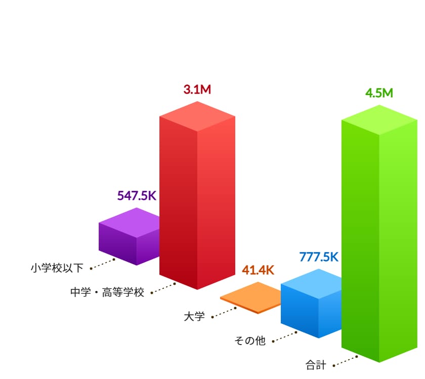 仮に、小学生以下の児童と、中学生・高校生を合計すると、英検受験者の実に「80%以上」を占めているのです。
